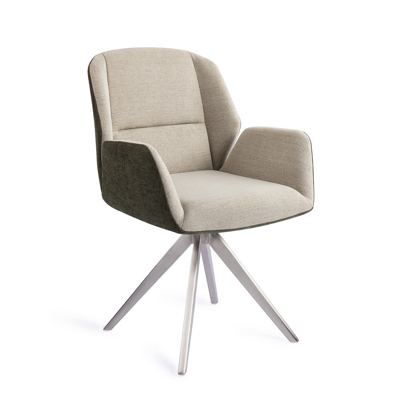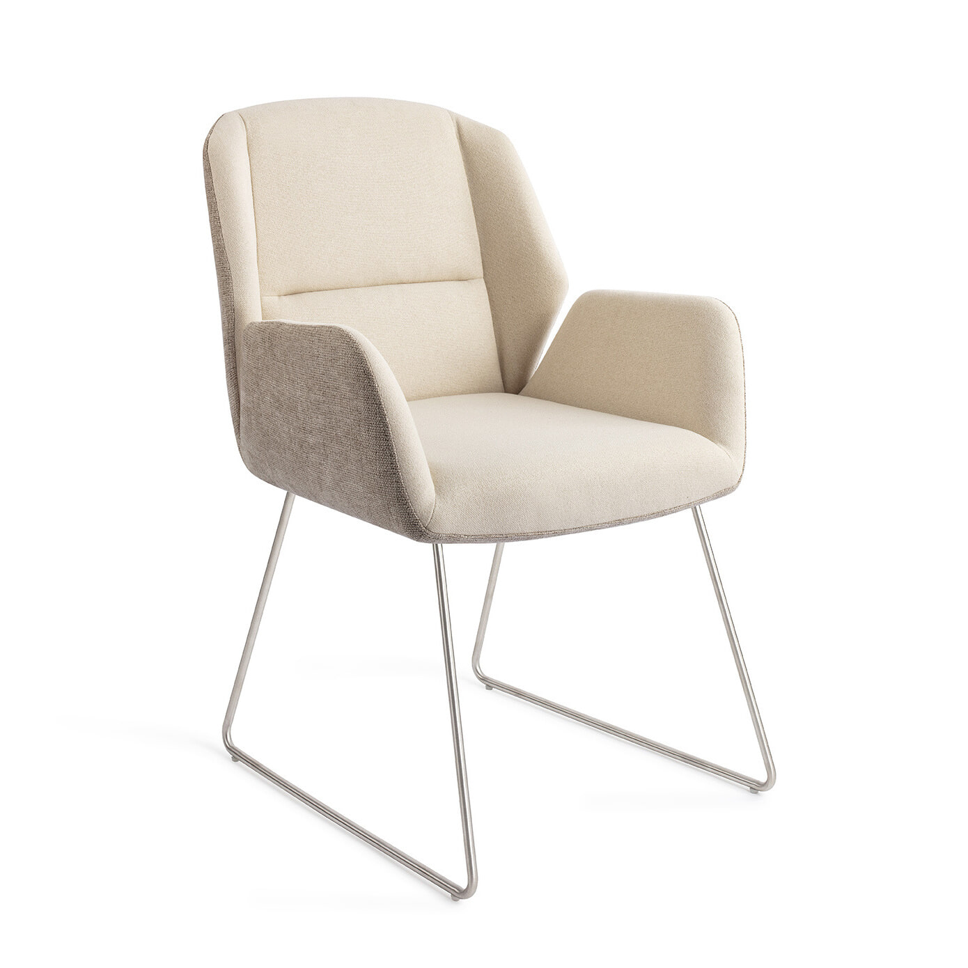 De zitting van de Myoko heeft een mooi verdeelde schuimlaag die niet te hard en niet te zacht is. Stevige armleuningen en de rechte rugleuning zorgen voor een juiste zithouding met voldoende steun. De zitting is bekleed met twee verschillende stoffen in verschillende kleuren wat zorgt voor een speels contrast en tegelijkertijd eenheid door de neutrale kleuren.